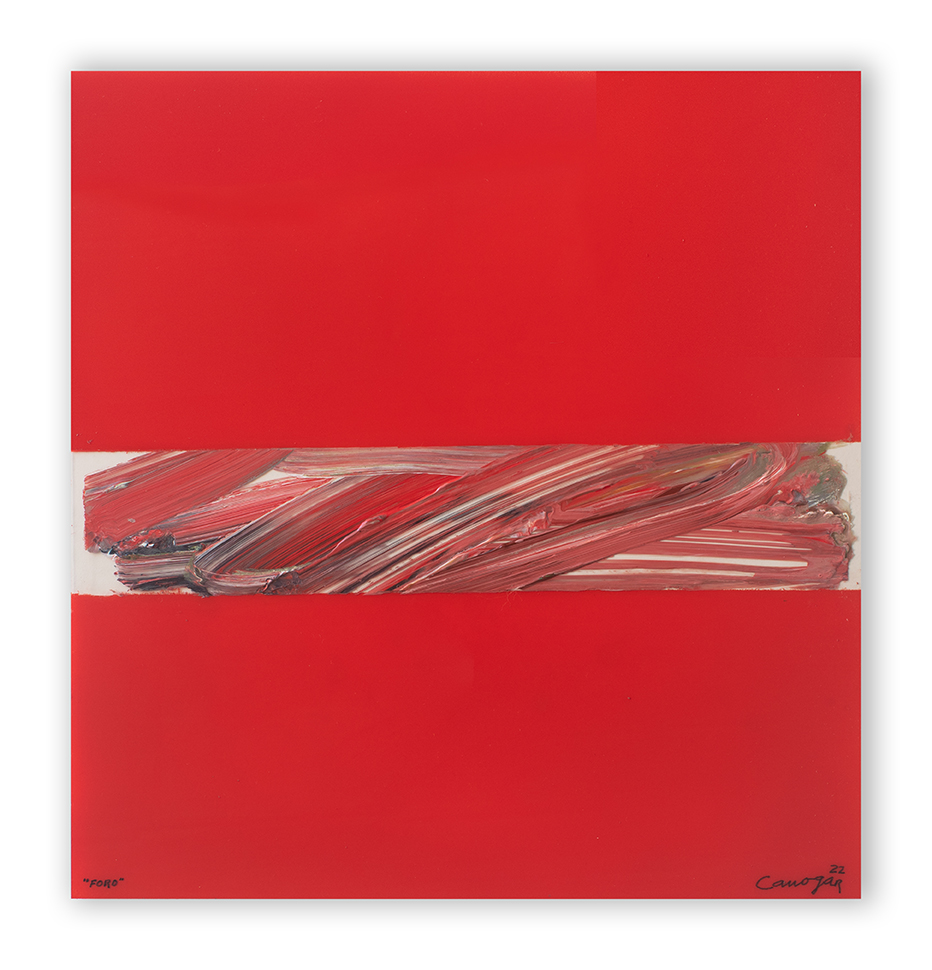 Firmado y fechado zona. inf. dcha.: “Canogar ´22”; inscripción zona inf. izqda.: “FORO”