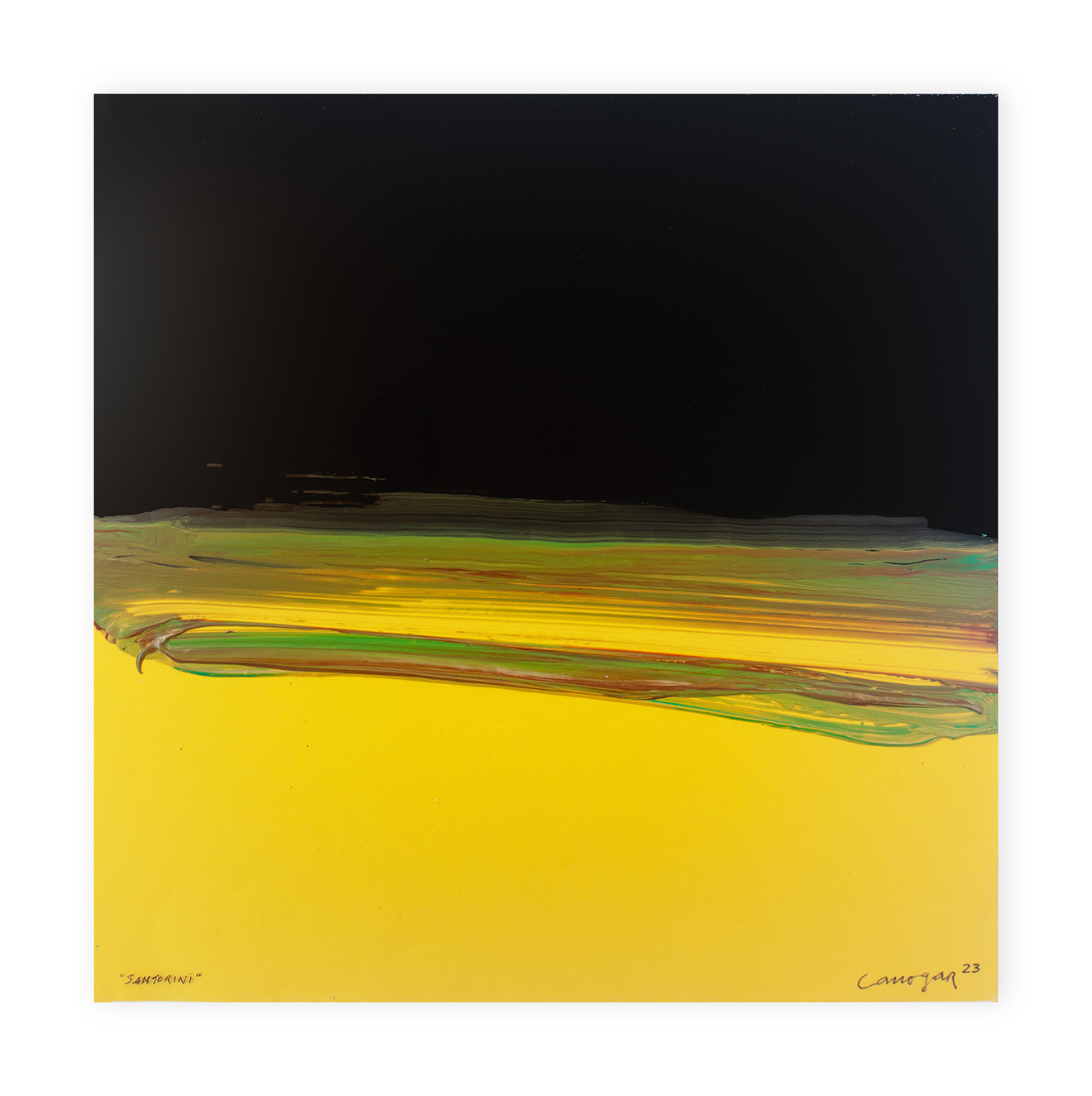 Firmado y fechado zona. inf. dcha.: “Canogar´23”; inscripción zona inf. izqda.: “SANTORINI”