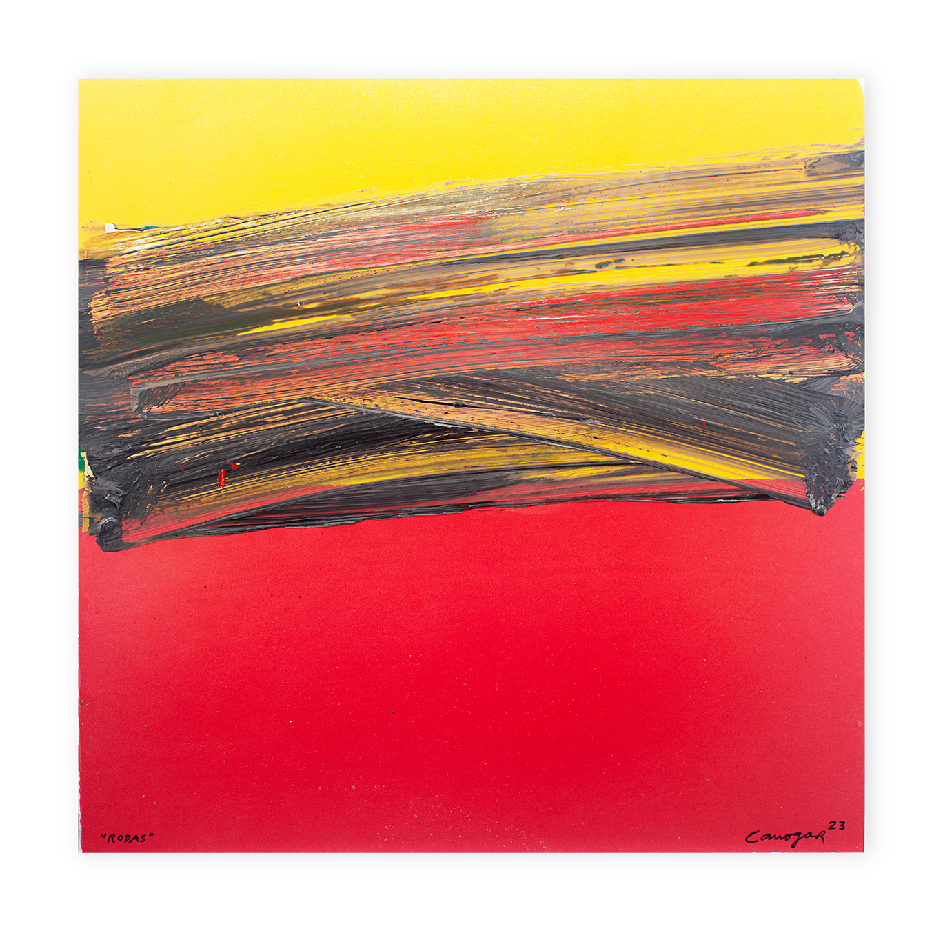 Firmado y fechado zona. inf. dcha.: “Canogar´23”; inscripción zona inf. izqda.: “RODAS”